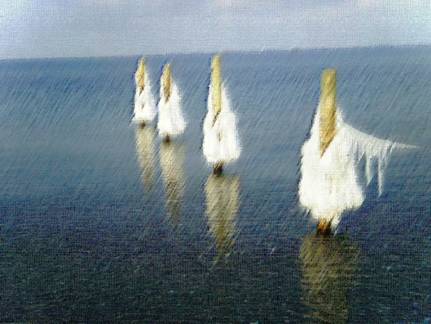 ballerinaerne står og danser piruetter ude på vandet.